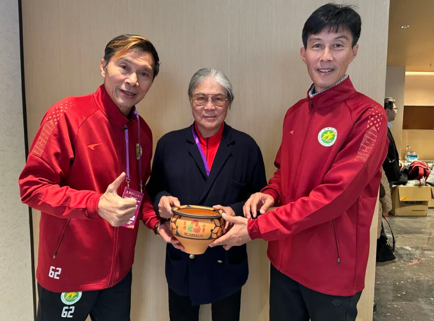 • 王新軍仰韶文化非遺作品贈(zèng)霍震霆 “全運(yùn)花開(kāi)”..